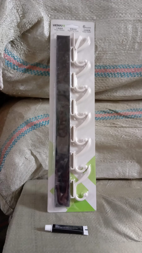 Cloth hanger, Wall Door Hooks Rail for Hanging Clothes for Hanging Hook Rack Rail, Extra Long Coat Hanger Wall Mount for Clothes, Jacket, Hats, 6 Hook With Eco-friendly Liquid Adhesive Glue