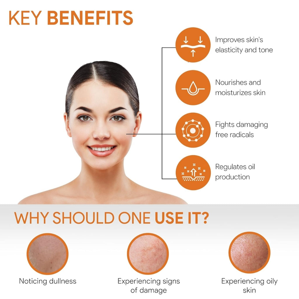 ⏳ Anti-Aging Properties: Vitamin C supports collagen production, helping to maintain skin elasticity while reducing fine lines and wrinkles.