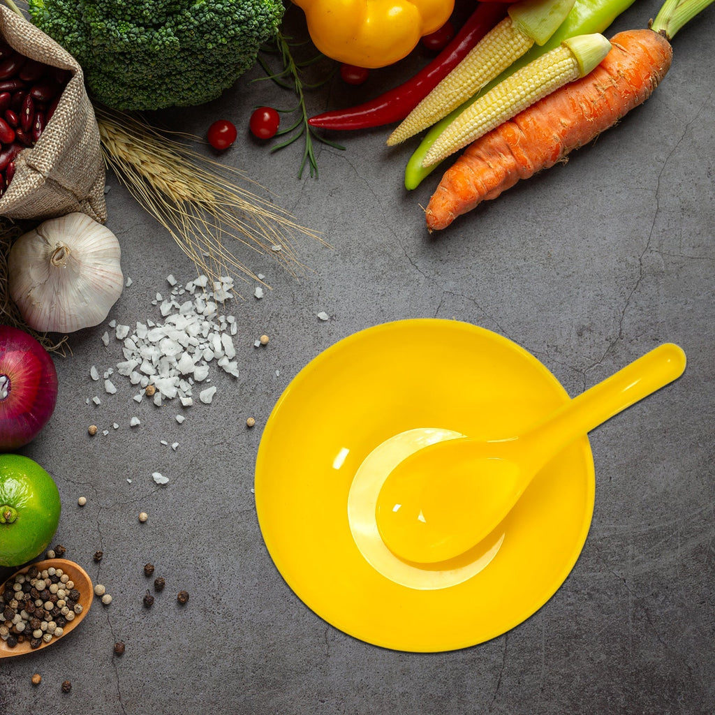 Soup Bowl Spoon Set Plastic For Kitchen & Home Use (6Pcs Set)