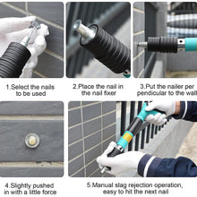 - Our manual steel nails gun is compact and portable. Easy to use just five simple steps: 1. wear protective glasses, gloves, and earplugs; 2. choose the nail; 3. nail gun vertically at workplace ready to shoot; 4. vertical force into wall; 5. hold silencer sleeve by hand, rear compression several times, to withdraw.